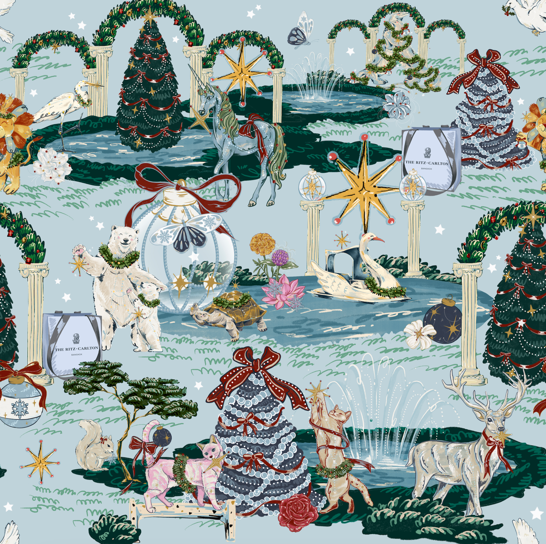 The Celestial Christmas Ball transforms Lumphini Park into a cosmic celebration, where star-born creatures gather as symbols of hope and wonder. Guests are invited to follow the Great Bear, Swan, Reindeer, Unicorn, Dove, and Wolf through an evening of light, music, and festive discovery beneath the radiant Stellar Christmas Tree.